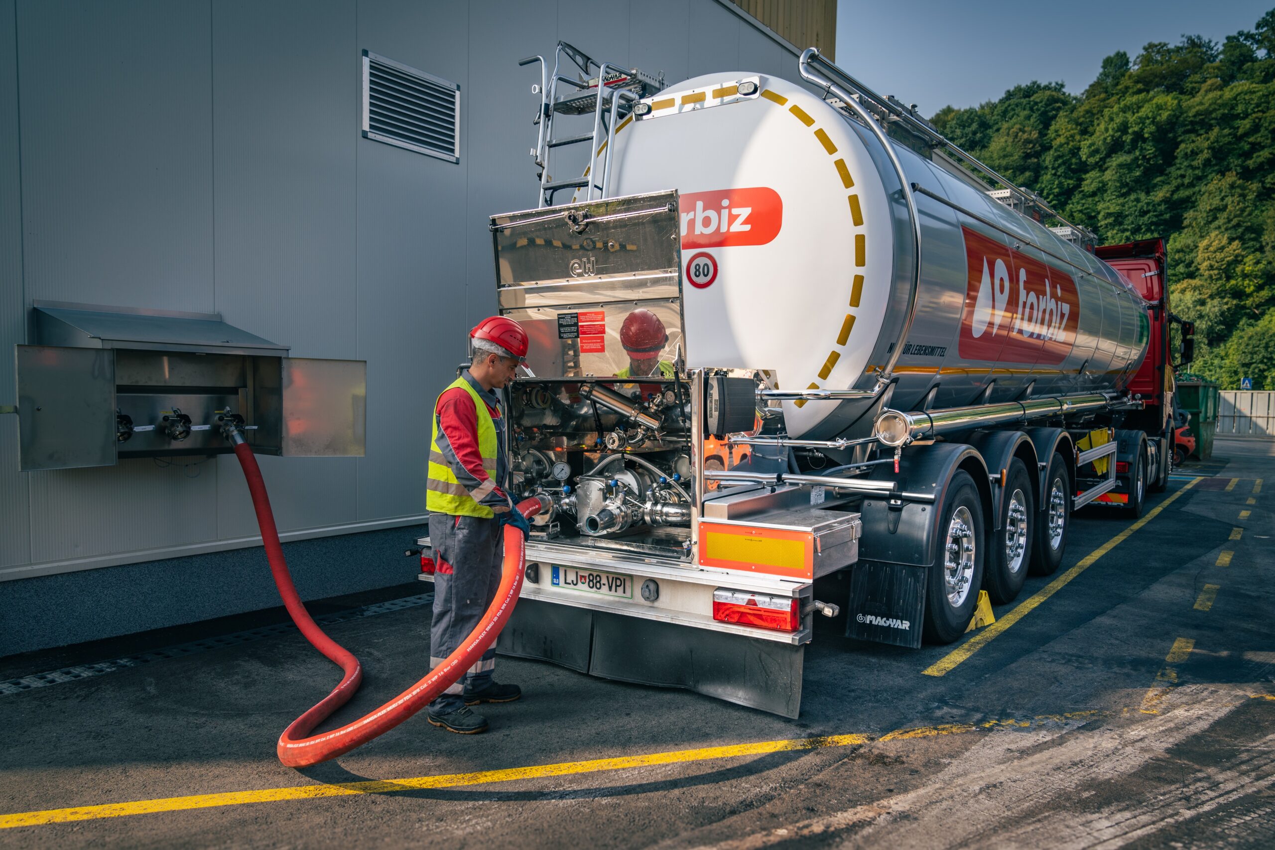 Flüssige Lebensmittel werden in speziellen Edelstahltanks transportiert, die die höchsten Hygienestandards übertreffen. Das Fassungsvermögen der Tanks beträgt bis max. 32 000 Liter.